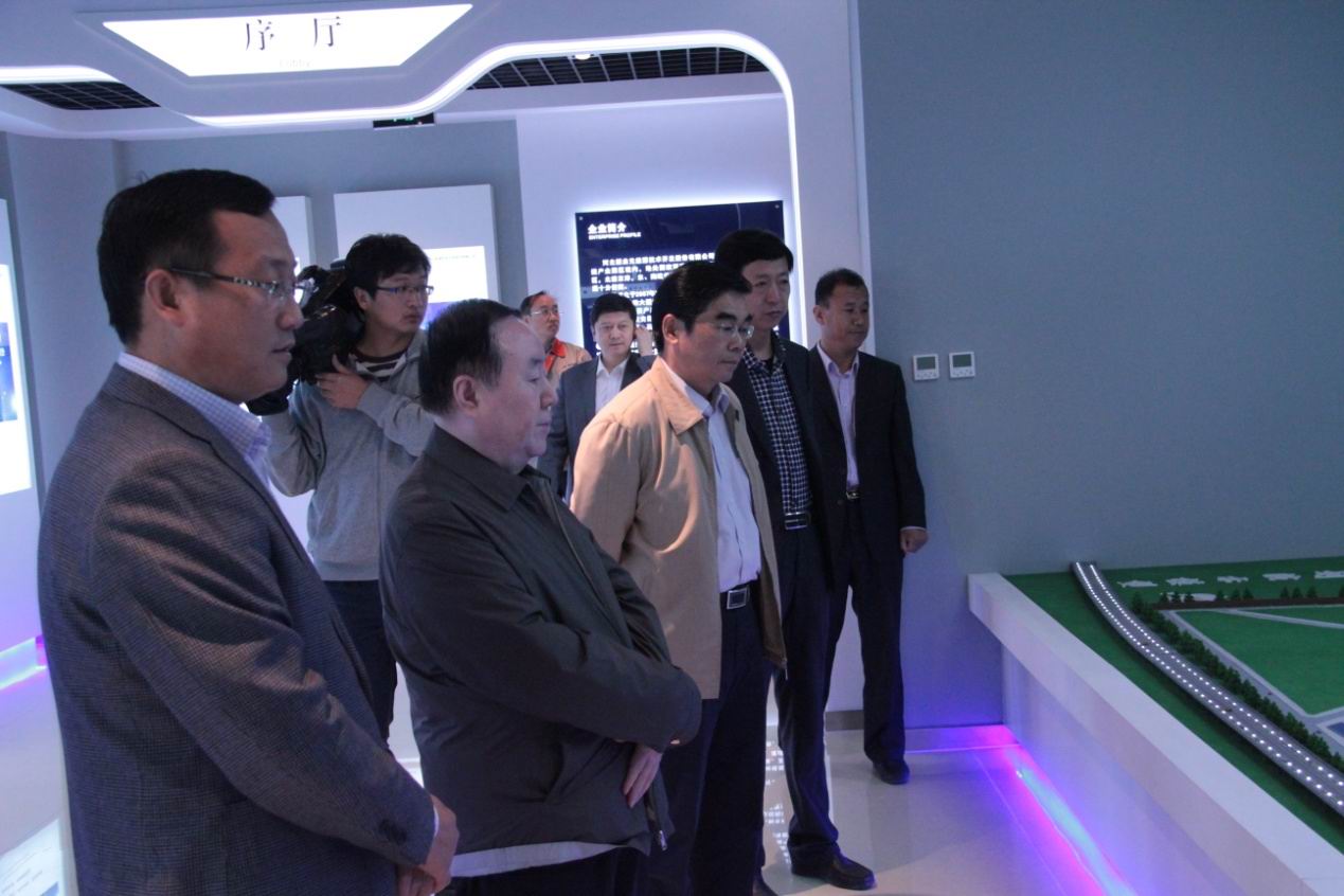 趙主席一行首先參觀了科研樓展廳,解說員向來訪領(lǐng)導(dǎo)著重介紹了公司現(xiàn)狀和公司理念等內(nèi)容,在公司裝置沙盤前,集團于總就公司規(guī)模、年產(chǎn)值、未來規(guī)劃等內(nèi)容向來訪領(lǐng)導(dǎo)作簡單介紹。
