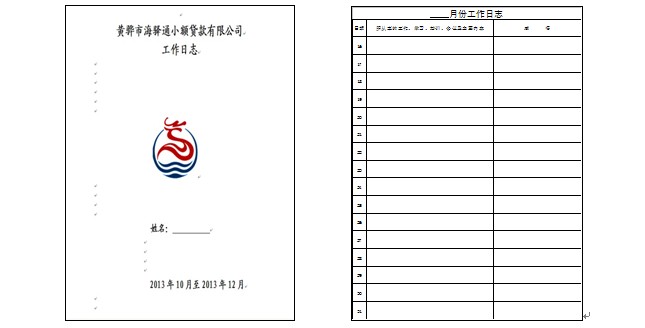 為了更好地推動工作,提高工作效率和員工的責(zé)任感,貸款公司開展了員工工作日志制度。使每位員工都能清楚自己今天做了哪些工作,哪些工作還沒有做,自己心里有一個工作算盤,如何合理安排時間,去有效落實工作,把工作干得更好,更出色。公司還規(guī)定每半月亮工作日志、談感悟。同時通過工作日志,也能具體掌握全體員工的工作概況,對工作中的得與失,起到很好的檢驗和總結(jié)作用。