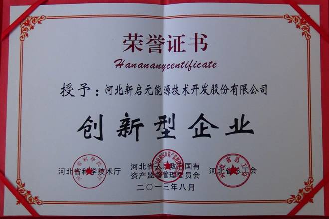 2013年5月公司收到河北省科技廳印發(fā)的《關(guān)于開展河北省創(chuàng)新型企業(yè)評審工作的通知》,技術(shù)工程部根據(jù)通知要求組織相關(guān)材料申報(bào)創(chuàng)新型企業(yè),于6月上報(bào)到滄州市科技局,初審?fù)ㄟ^后,7月公司副總經(jīng)理劉海軍、技術(shù)工程部經(jīng)理王政、科員王亞君在石家莊參加答辯,并順利通過獲得河北省創(chuàng)新型企業(yè)榮譽(yù)稱號。