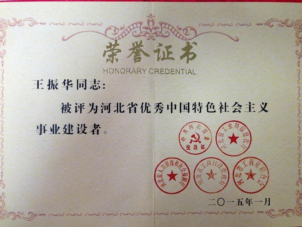 1月4日,第五屆河北省優(yōu)秀中國特色社會主義事業(yè)建設(shè)者表彰大會在石家莊召開,包括集團(tuán)公司董事長王振華同志在內(nèi)的48名非公有制經(jīng)濟(jì)人士和其他社會階層人士獲得了“優(yōu)秀中國特色社會主義事業(yè)建設(shè)者”榮譽(yù)稱號。