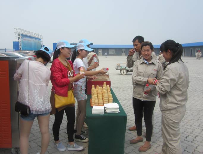 根據(jù)董事長(zhǎng)提出的“集聚激情、 亮出真情、 體現(xiàn)親情”的口號(hào), 6月17日一早,華悅凱旋大酒店經(jīng)過(guò)細(xì)致安排,選派精干員工,在酒店副總經(jīng)理孫軍和施艷帶領(lǐng)下,到新欣園施工現(xiàn)場(chǎng)進(jìn)行慰問(wèn),將一瓶瓶滿懷敬意的礦泉水送到建設(shè)者們的手中,并現(xiàn)場(chǎng)制作冰激凌,給建設(shè)者帶去一絲絲“溫暖 ”的涼意,全體員工共祝新欣園生日快樂(lè)。