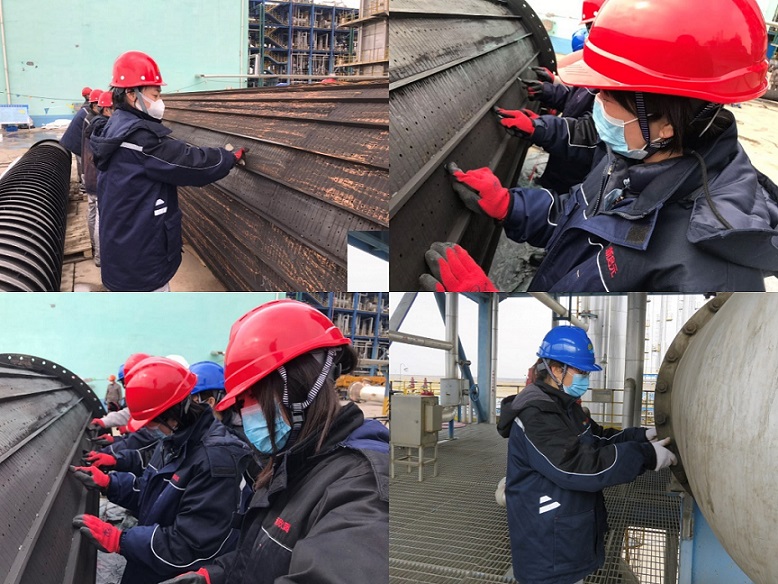 為保質(zhì)保量、安全高效地完成各項(xiàng)檢修項(xiàng)目,公司領(lǐng)導(dǎo)高度重視、親自部署、帶頭沖鋒,相關(guān)部門的伙伴們通力配合、夙興夜寐、拼搏奮進(jìn)。自檢修開始,公司每天早晨對(duì)參檢人員進(jìn)行安全宣貫,強(qiáng)調(diào)安全施工的注意事項(xiàng);下午召開檢修工作會(huì)議,跟蹤每日檢修進(jìn)度,協(xié)調(diào)檢修過程中的問題,詳細(xì)布置次日檢修計(jì)劃及人員安排。