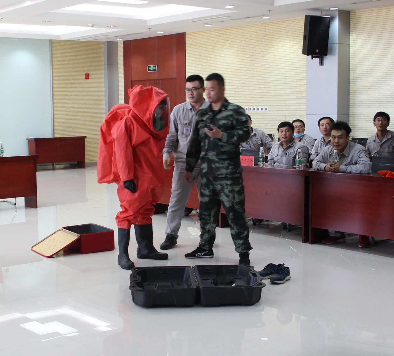 本次比賽分為“正壓式空氣呼吸器佩戴、防化服穿戴、安全知識問答”三個項目。在主持人發(fā)出“開始”口令后,選手們個個奮勇爭先,都拿出了自己的看家本領(lǐng),展現(xiàn)精湛的“武技”,將活動氛圍推向高潮。經(jīng)過緊張激烈的角逐,最終運行二部張賽以18秒03的成績獲得正壓式空氣呼吸器佩戴項目的冠軍,運行一部王圣濤、馬帥以35秒71的優(yōu)異成績奪得防化服穿戴項目的冠軍。