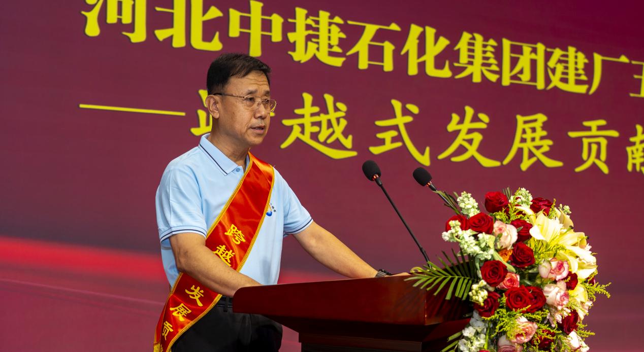 在熱烈的掌聲中,集團董事長王振華發(fā)表講話。董事長立足建廠五十周年的發(fā)展新起點,以《砥礪奮進五十載 繼往開來譜新篇》為題,深刻洞察時代變局,精準擘畫未來航程。他明確指出,面向未來,我們要“堅持創(chuàng)新驅(qū)動,打造核心競爭力;深化精益管理,提升運營效能;拓展市場空間,構(gòu)建發(fā)展新格局;堅持以人為本,共建幸福家園;踐行社會責任,彰顯企業(yè)擔當?!蓖瑫r,董事長以“篳路藍縷、櫛風沐雨、臥薪嘗膽、懸梁刺股”總結(jié)凝練了中捷石化五十年艱苦卓絕的奮斗歷程,并以此為精神內(nèi)核,提出了面向未來的發(fā)展要求。