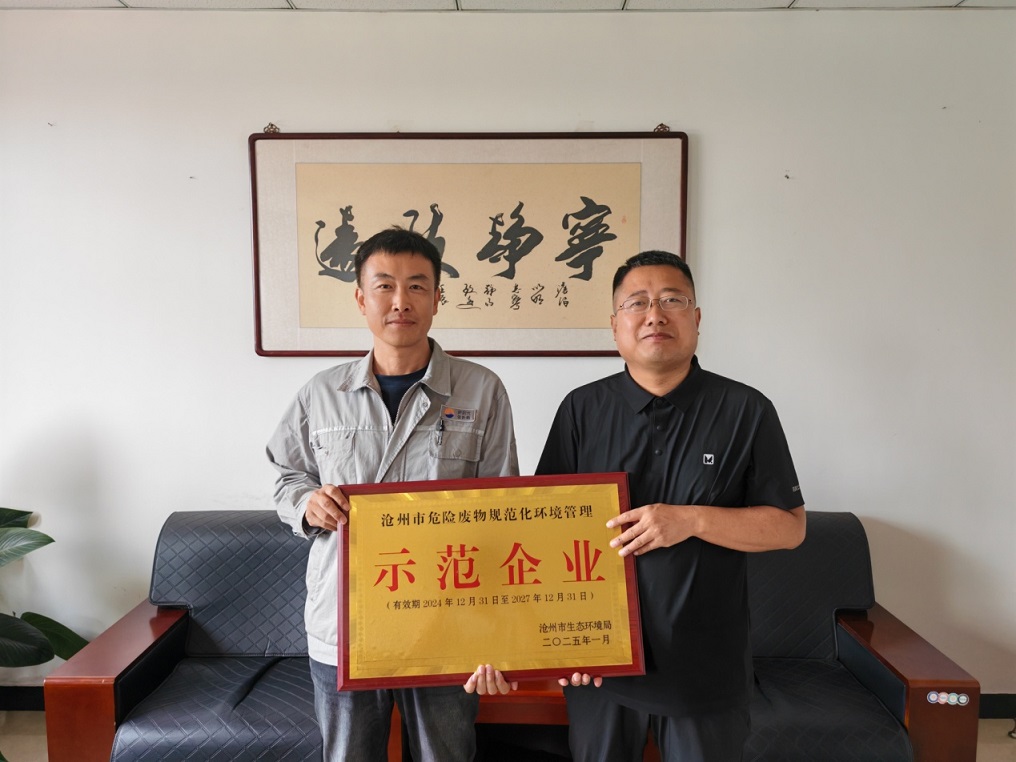 新啟元公司安全管理部訊 7月23日上午,中捷生態(tài)環(huán)境分局副局長劉樂將全區(qū)唯一獲得“滄州市危險廢物規(guī)范化環(huán)境管理示范企業(yè)”的獎牌及證書送到新啟元公司,此榮譽標志著公司的環(huán)境管理工作得到了各級生態(tài)環(huán)境部門的認可,同時也說明公司危險廢物管理工作的合規(guī)合法規(guī)范嚴謹。
